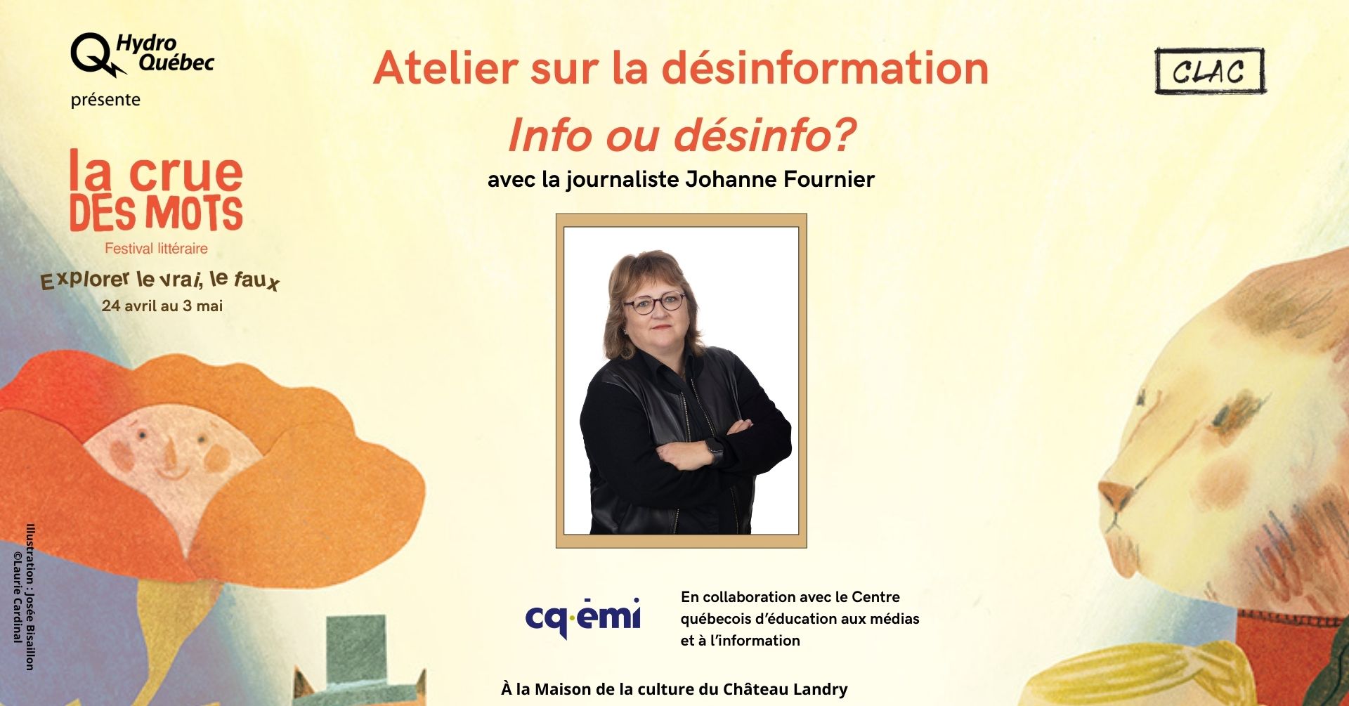 Atelier ouvert à tous sur inscription En collaboration avec le Centre québécois d’éducation aux médias et à l’information (CQÉMI)